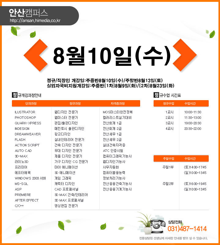 [정규개강]안산캠퍼스 2011년8월 정규개강안내