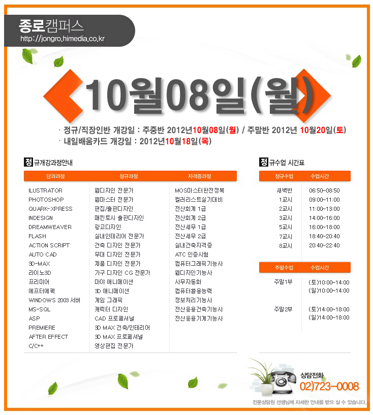 [정규개강] 2012년 10월 정규개강안내